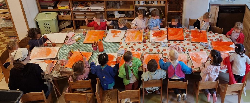 Au Jardin d’enfants, nous voulons offrir et animer un espace protégé, où le petit enfant puisse vivre pleinement son enfance à l’abri des trépidations de l’environnement quotidien, où il puisse s’émerveiller et se réjouir de ce qu’il découvre avec ses sens, où il puisse par ses jeux se lier au monde et aux autres et habiter progressivement ses mouvements et son corps. Ainsi l’enfant peut acquérir des bases saines pour son avenir.