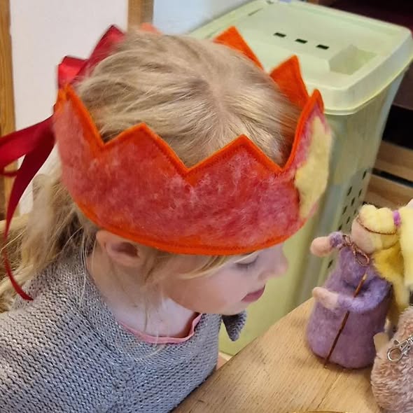 Pour ses 6 ans l’enfant reçoit également une couronne, celle-ci symbolise la lumière des pensées qui s’éveillent. Vers 6-7 ans, l’enfant ne vit plus seulement dans l’imitation : il commence à penser par lui-même, avec une imagination riche et personnelle.